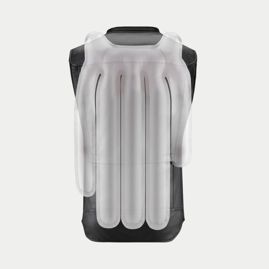 Systém poskytuje ochranu pomocí snadno přístupného airbagového vaku v oblasti zad, torza a vrchní části ramen.