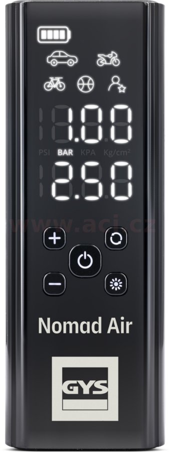 Pneumatika auta 195/60 R15 na 2,5 bar: cca 5 min, až 6× na jedno nabití