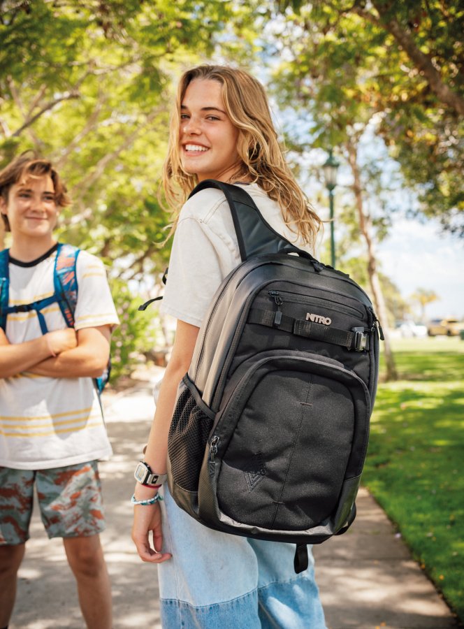 • Dvě hlavní prostorná oddělení, prostorný organizér, vnitřní kapsa na suchý zip vhodná pro nabíječky, kabely atd., popruh na skateboard, boční síťka na lahev, boční polstrovaná kapsa na zip.