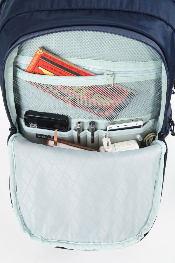• Dvě velké hlavní komory s vnitřními kapsami na kabely a nabíječky.