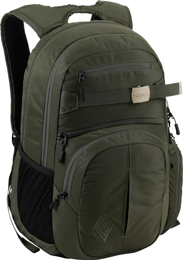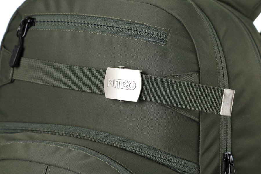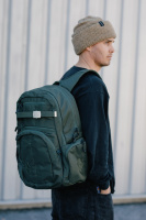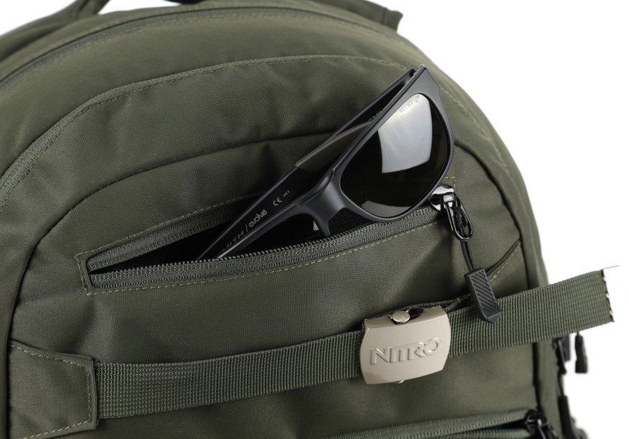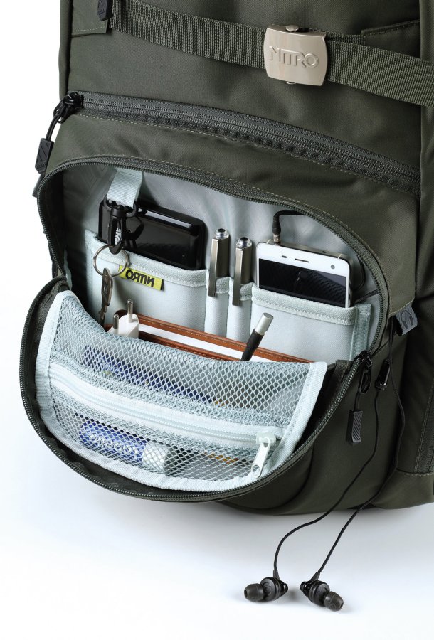 • Fleecem vystlaná kapsa na brýle a podobně choulostivé věci, dvě hlavní prostorná oddělení, kapsa na tablet, vypolstrovaná kapsa na 17" notebook, popruh na nesení skateboardu, postranní kapsa na zip, postranní síťovinová kapsa na lahev.