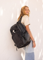 • Fleecem vystlaná kapsa na brýle a podobně choulostivé věci, dvě hlavní prostorná oddělení, kapsa na tablet, vypolstrovaná kapsa na 17" notebook, popruh na nesení skateboardu, postranní kapsa na zip, postranní síťovinová kapsa na lahev.