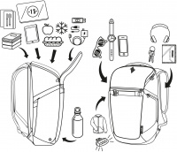 • Vnější velká zipová kapsa na všechny nezbytnosti, dvě boční kapsy na lahev, jedna na zip, druhá rozvíratelná, pro zachování co nejčistšího designu batohu.