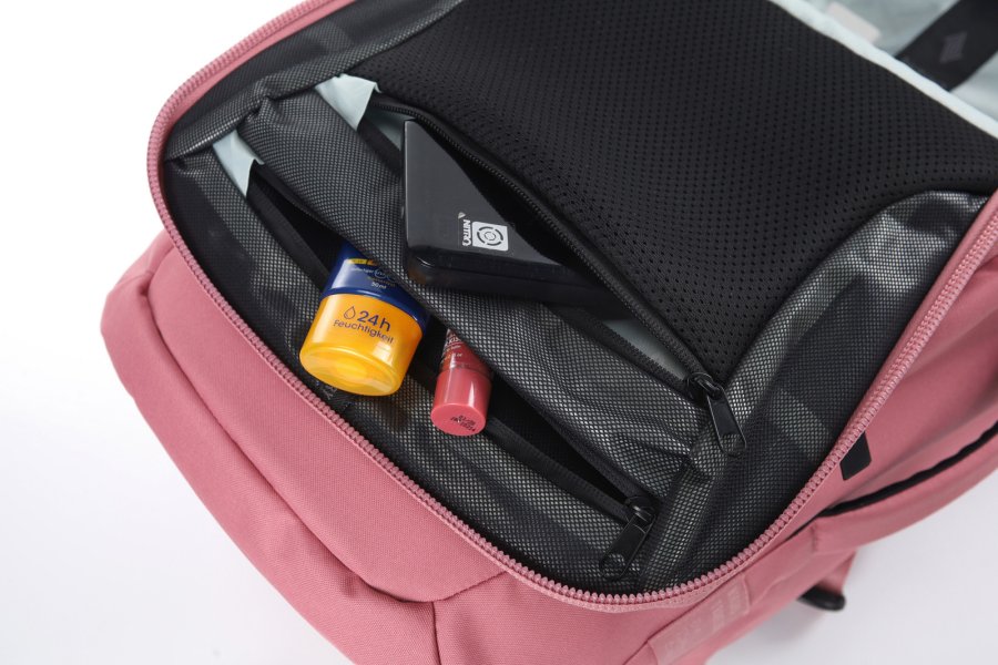 • Integrovaná voděodolná kapsa na toaletní potřeby s voděodolným zipem.