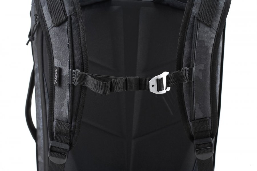 Vypolstrovaná kapsa na 15" notebook s bočním vstupem, rolovací uzavírání na kovový háček, přední kapsa s organizerem, polstrované popruhy s hrudní pásem, měkké síťovinové polstrování zad.