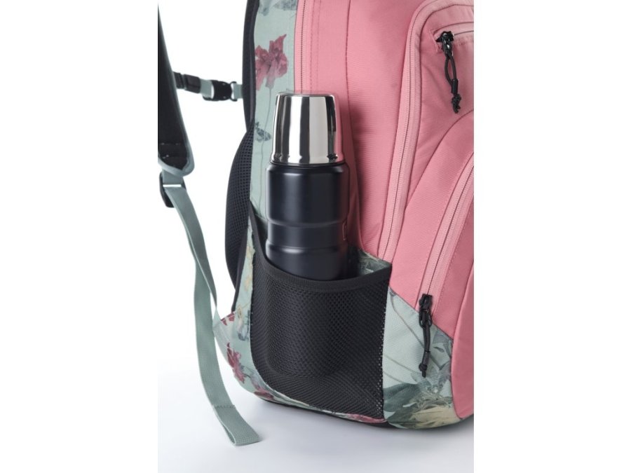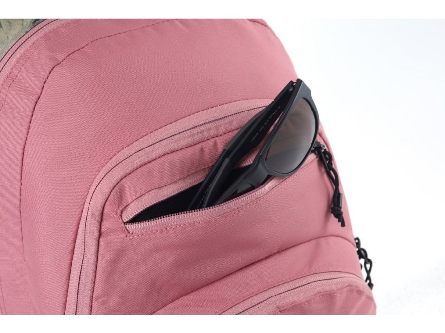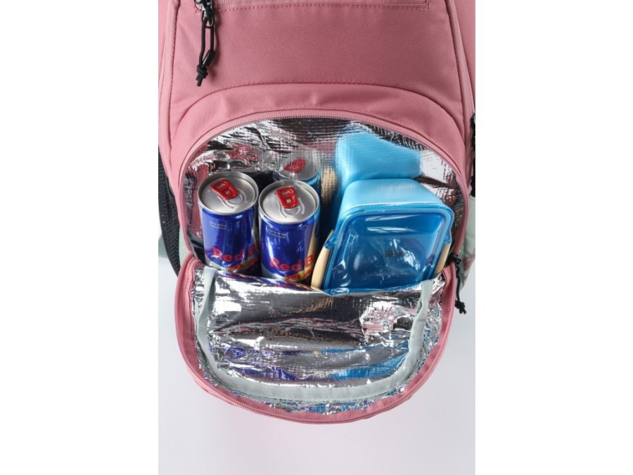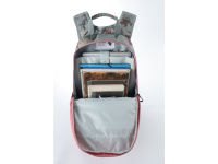 • Vypolstrovaná kapsa na 15" notebook, fleecem vystlaná kapsa na brýle a podobně choulostivé věci, průchodka na sluchátka, organizér, přední termoizolační kapsa co zachová studené pití, postranní síťka na lahev.