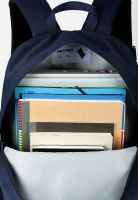 Batoh s pohodlnými polstrovanými popruhy, přední kapsou na zip, polstrovanou kapsou na 15" notebook a doplňky z veganské kůže.