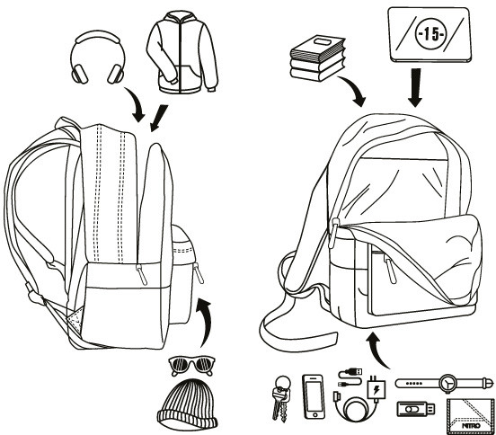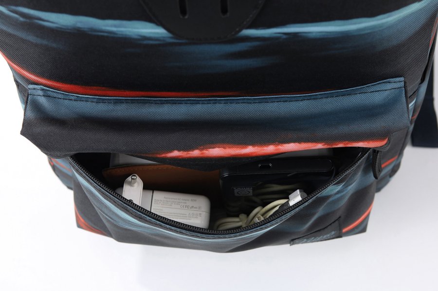 • Batoh co se skvěle hodí do školy i do lesa, má dvě zapínací hlavní kapsy s integrovanou polstrovanou kapsou na 15" notebook a menší přední kapsičku na zip.
