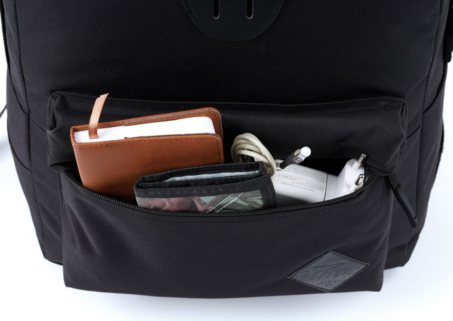• Batoh co se skvěle hodí do školy i do lesa, má dvě zapínací hlavní kapsy s integrovanou polstrovanou kapsou na 15" notebook a menší přední kapsičku na zip.