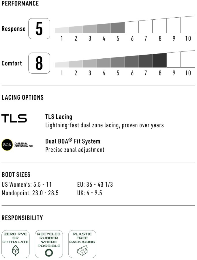 Boty Monarch jsou perfektní ukázkou funkčního stylu, vytvořené pro celodenní pohodlí a podporu při jízdě po všech svazích, s grácií a ladností. Boty Monarch přicházejí s jednoduchým, ale účinným utahováním, přiměřenou flexí a pohodlím, které ucítíte hned při prvním nazutí.