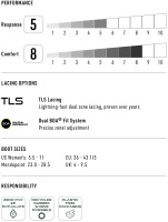 Dual BOA® Twin šněrování kombinované s Bail Out systémem usnadňuje vstup i rozšněrování a vystoupení z boty, které bude trvat méně než minutu.