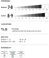 Nechybí spolehlivé TLS Twin šněrování se kterým se nazujete a vyzujete za míň jak 60 sekund a ILS šněrování vnitřní botky s Re/Lace utahováním pro jednoduché dotažení za pochodu.