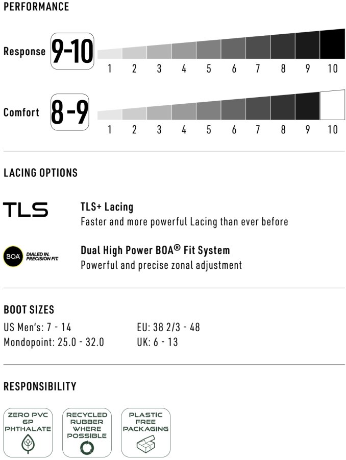Samozřejmostí je Bail Out systém usnadňující rozšněrování a vystupování z bot a ILS šněrování vnitřní botky s Re/Lace utahováním. Prostě jen vyhrnete kalhoty a zatáhnete za tkaničku.