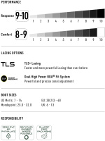 Nová generace dvoustupňového systému utahování tkaniček TLS má inovovaný, odolný zámek, speciálně designovaný tak, aby v něm tkaničky pevně držely a nepovolily ani po celodenní palbě.