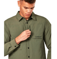 Složení: 100% recyklovaný nylon. Zateplená zimní bunda s vnější obšívkou ve stylu košile. Obšívka z recyklovaného ripstop nylonu. Termální výstelka s plnivem z dutých vláken v oblasti trupu a rukávů. Hlavní zip s krycí manžetou se zapínáním pomocí patentů. Kapsy v ovlasti hrudi se zapínáním na zip. Kapsy v oblasti pasu se zapínáním na zip disponují termovýstelkou z fleece textilie. Jedna kapsa... Celý popis