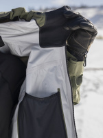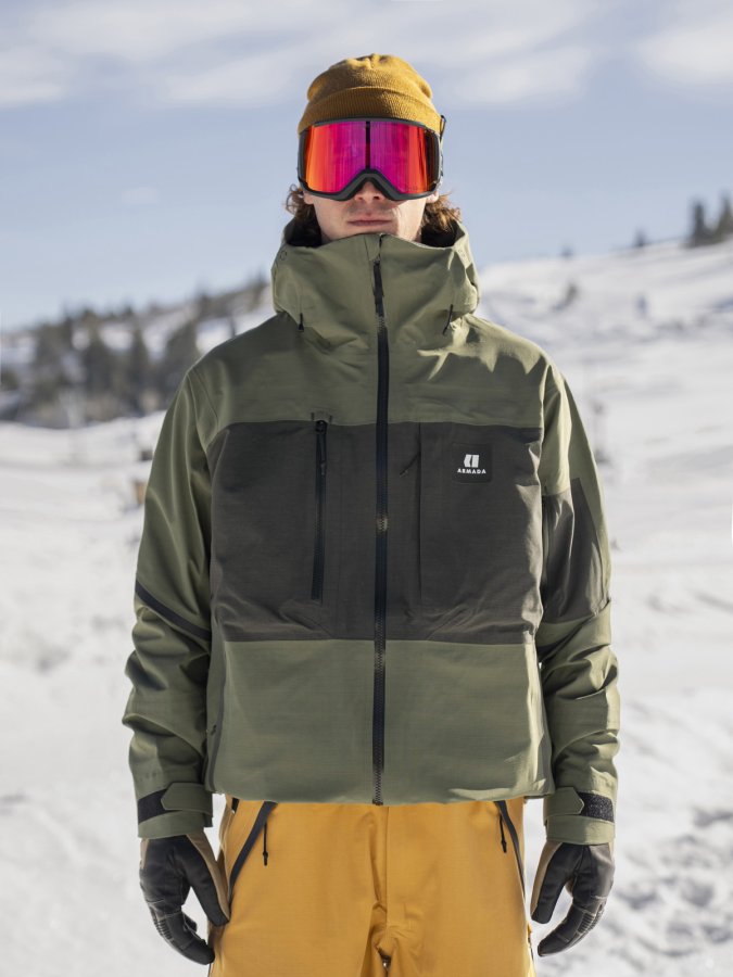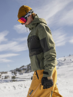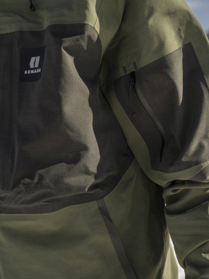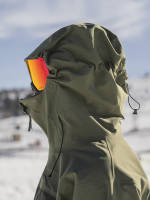 Bunda standardního střihu má odvětrávací zipy v podpaží, patentované utahování CohaesiveTM na spodním lemu a u kapuce, měkké lycrové rukávky s očkem na palec a měkoučký microfleece v oblasti tváře.