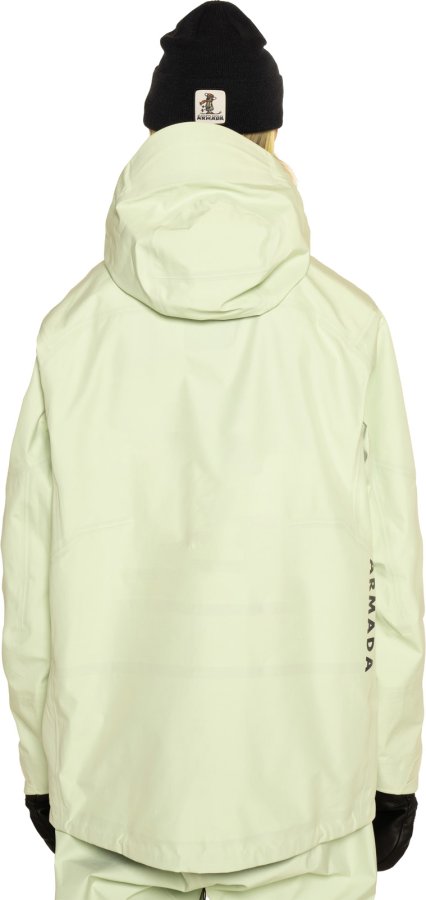 Bunda standardního střihu má odvětrávací zipy v podpaží, patentní utahování CohaesiveTM na spodním lemu a u kapuce, měkké lycrové rukávky s očkem na palec a měkoučkýmicrofleece v oblasti tváře.