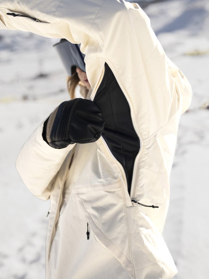 Bunda standardního střihu má síťovinou kryté odvětrávací zipy v podpaží, patentní utahování na spodním lemu a u kapuce, kvalitní YKK zipy, měkké lycrové rukávky s očkem na palec a zateplené kapsy.