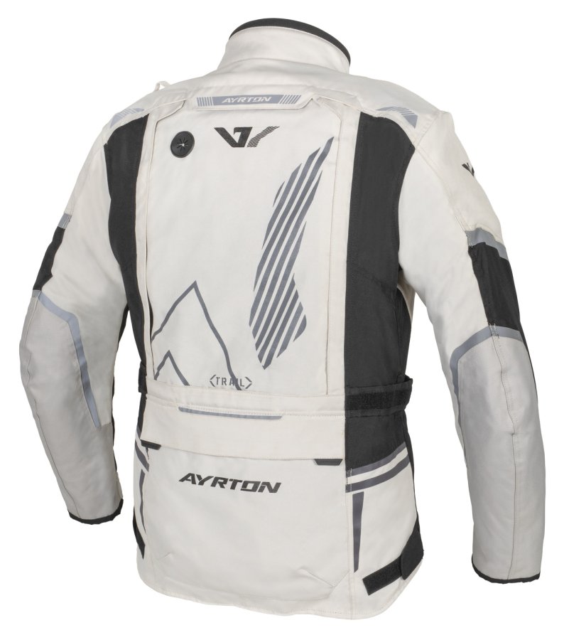 Dlouhá, cestovní, textilní bunda TRAIL disponuje CE certifikovanými protektory LITE PRO, které jsou pružné, lehké, prodyšné a díky malé tloušťce i nenápadné. Vnější polyester obšívka bundy se systémem ventilačních otvorů je doplněna o vnitřní odnímatelné vrstvy v podobě pláštěnky a termo vložky s plnivem z dutých vláken, která ochrání během chladného počasí. Krátký zip YKK® #8 umožňuje propojení bundy a kalhot.