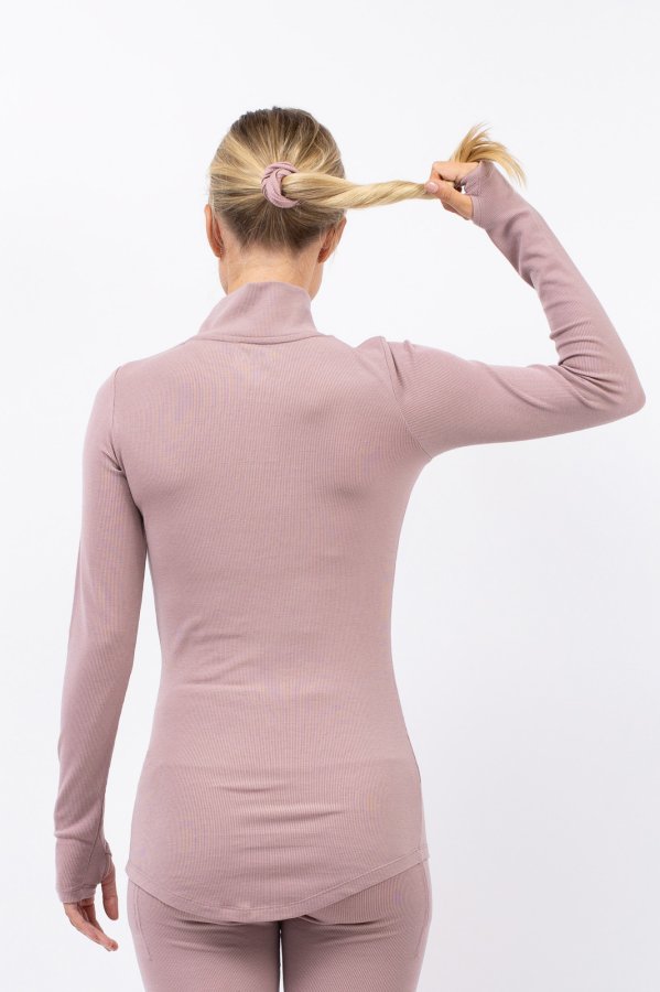 Jemný žebrovaný úplet z merino vlny je příjemný k pokožce a nikde nekouše.