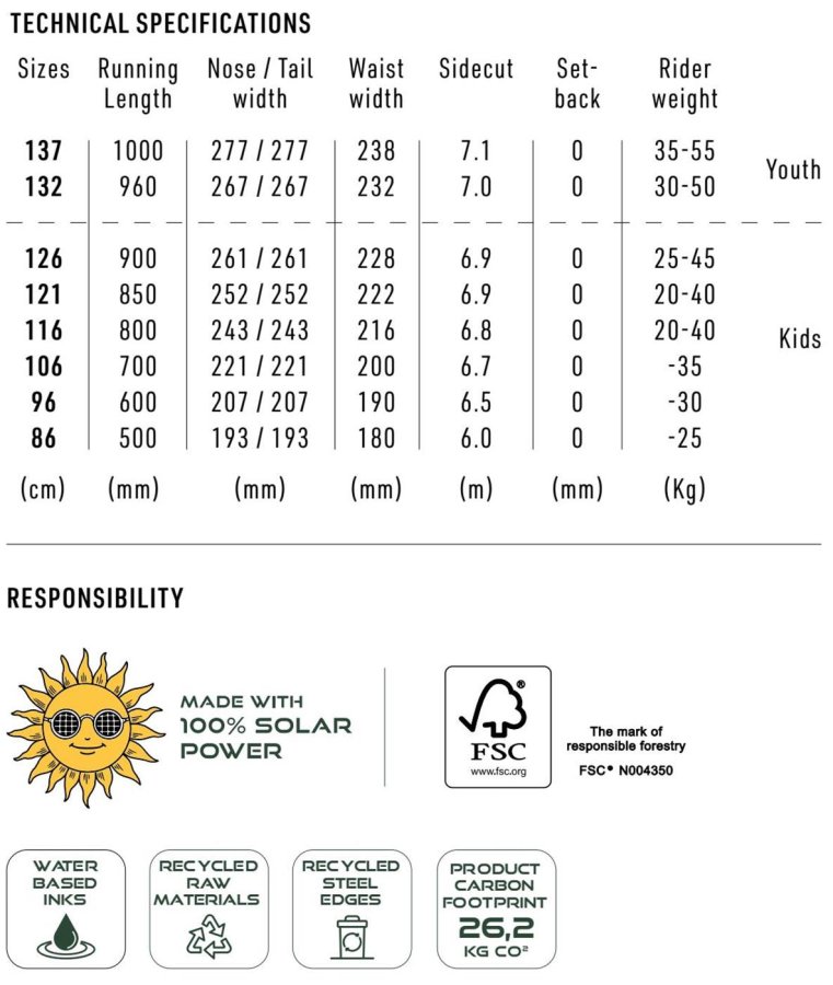 • Letos jsme naše snowboardy opuncovali zeleným kolkem udržitelnosti a opatřili všechna prkna materiály přátelskými k naší planetě, recyklovanými hranami a v celém výrobním procesu využily pouze solární energii.