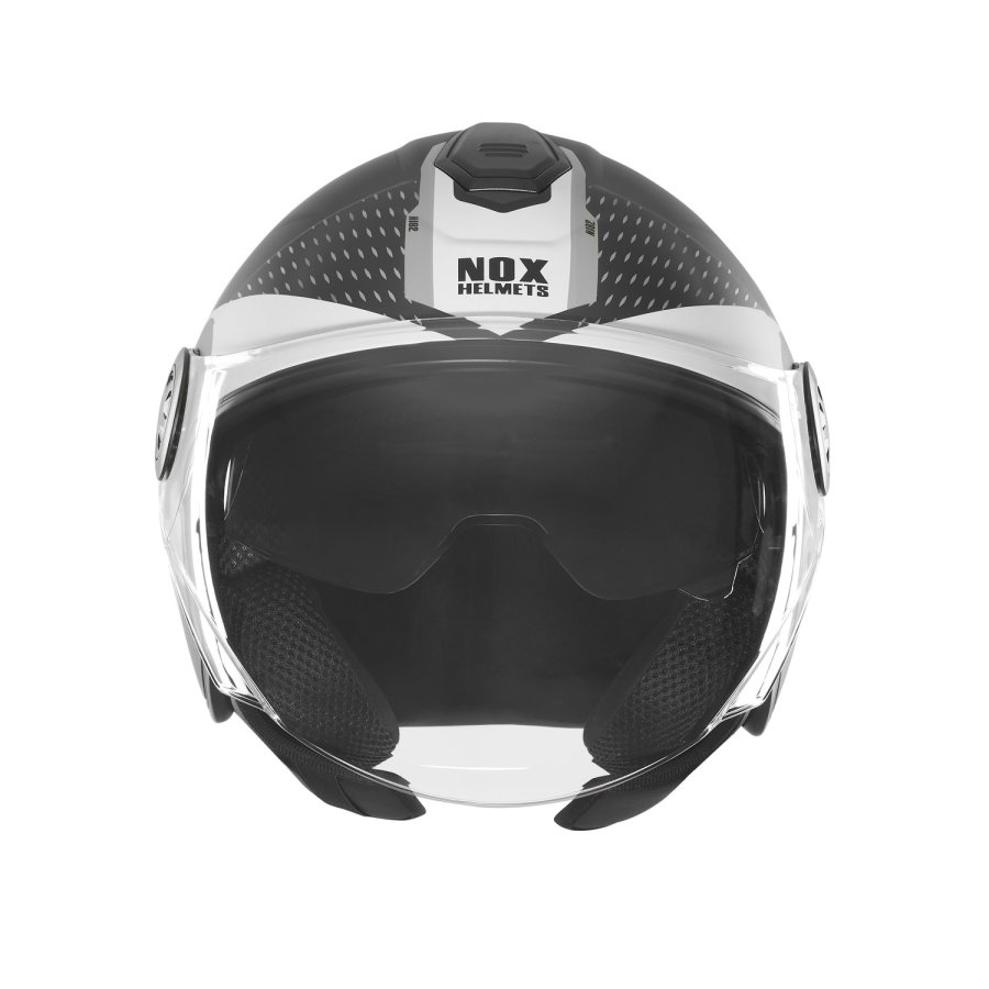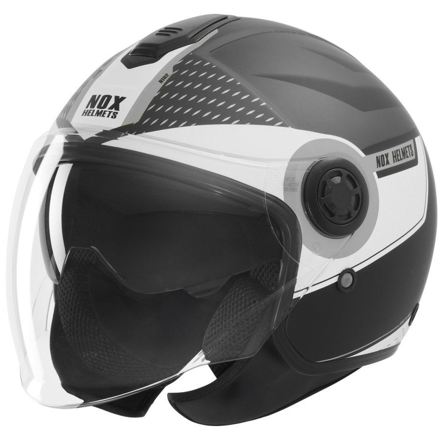 N182 je nejlevnější otevřená přilba od NOXu která má plexi, sluneční clonu a přípravu pro sluchátka komunikátorů.