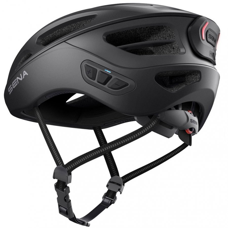 SENA R1 EVO. Cyklistická přilba s integrovaným headsetem. EVO = Mesh + zadní LED světlo + kšilt