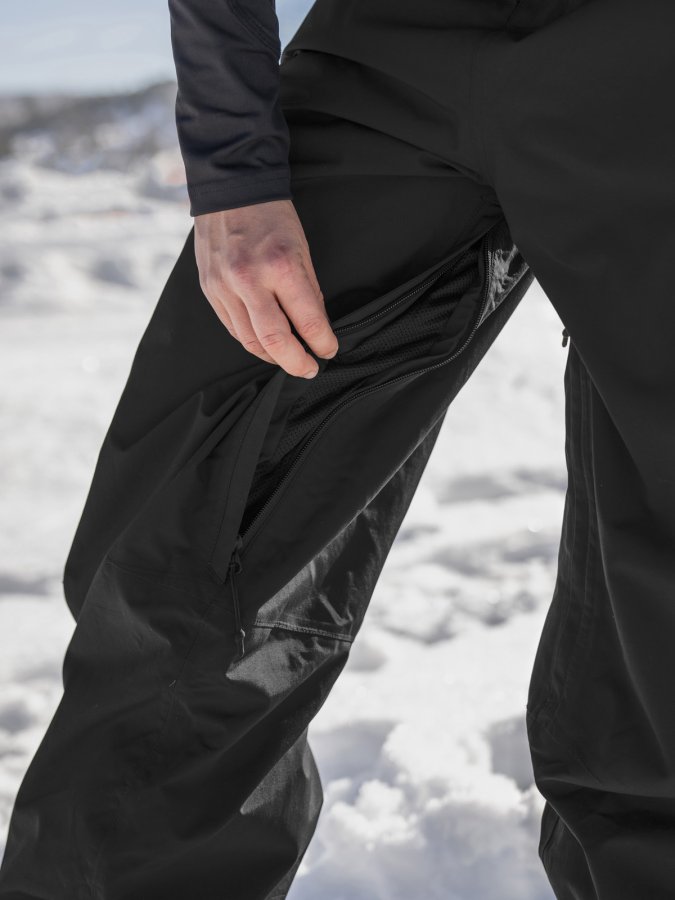 • Pro případ teplých jarních shredů jsou kalhoty na vnitřní straně stehen vybaveny ventilačními zipy krytými síťovinou.