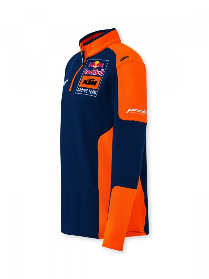 Týmová mikina KTM Red Bull Racing z oficiální kolekce poslouží jako perfektní parťák do každého počasí. Skvělý doplněk na závodní dráhu. Lehká mikina vyrobena s funkčního materiálu.