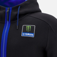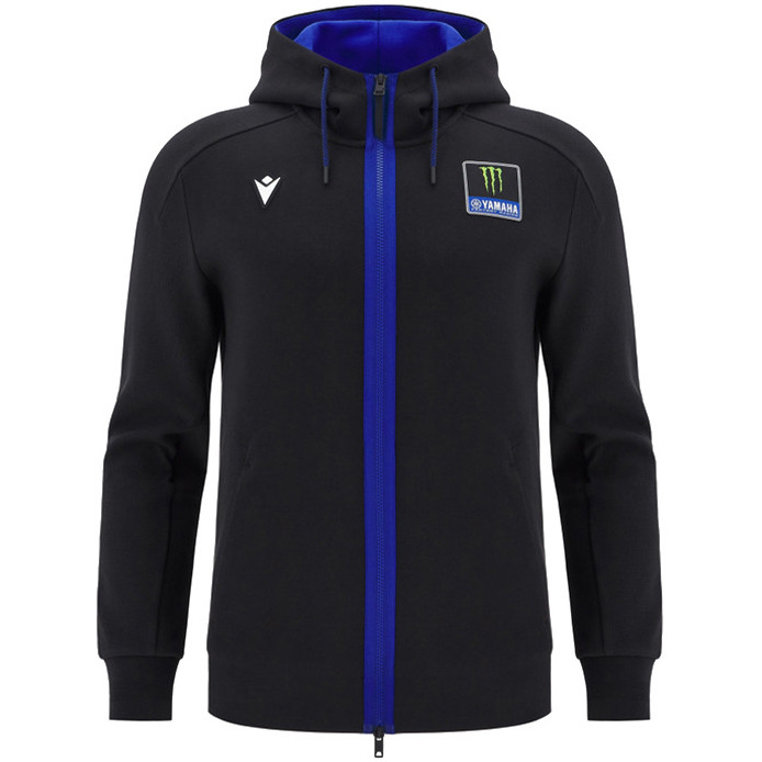 Mikina na zip s kapucí Yamaha Racing s logem týmu MotoGP na přední straně. Žebrovaná textura na rukávech, vynikající střih a tmavě modré doplňky dodávají oděvu nádech elegance a dodávají mu vizuální dynamiku. Pružný a pohodlný materiál