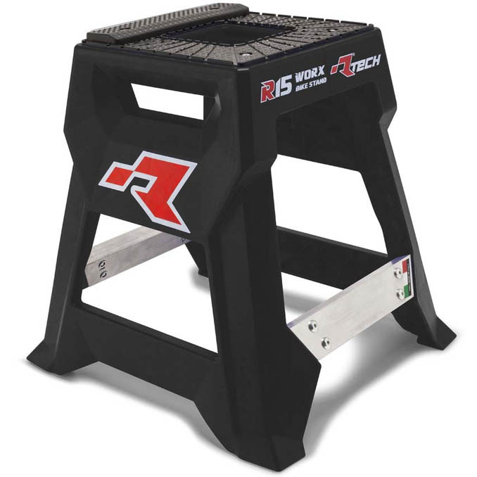Stojan R15 WORX BIKE STAND je primárně určen pro motokros/enduro motocykly. Vyroben je z probarveného technopolymeru - na vrchu je černá gumová protiskluzová vrstva, bočnice jsou z anodizovaného hliníku. Celý popis