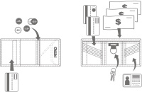 • Kapsička na drobné na zip, kapsa na doklady, přihrádky na karty, očko na klíče, či řetízek.