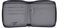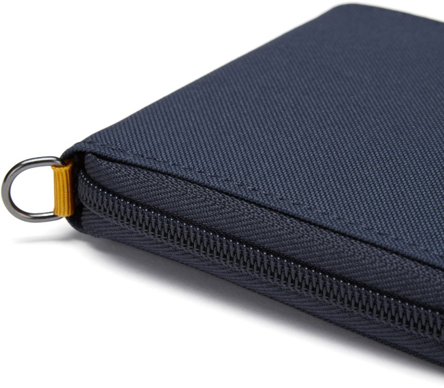 Vnější kovový kroužek můžete využít k uchycení peněženky bezpečnostním a proti přeříznutí odolným Pacsafe páskem (není součástí balení) nebo jím peněženku jednoduše připnout dovnitř batohu.