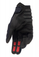 ergonomicky střižená dlaň z pevné a odolné syntetické kůže se zdvojenou vrstvou v oblasti úchopu, polstrováním v oblasti spodní části a okraji dlaně zajišťuje vyšší trvanlivost, komfort během delší jízdy a odolnost proti oděru