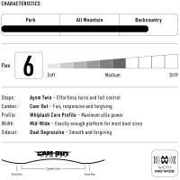 • Celkově asymetrický tvar Twin a Dual Degressive vykrojení ti nabídne nekonečnou kontrolu v carvových obloucích, zatímco hybridní Cam-Out Camber a jádro Whiplash Core Profile dodá tvému ollie na síle.