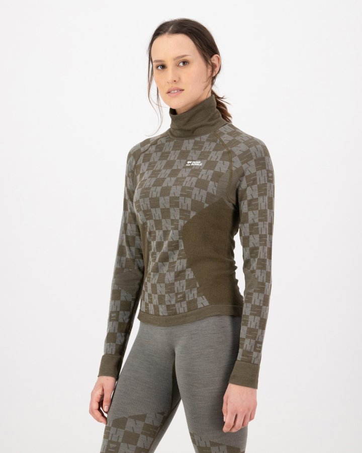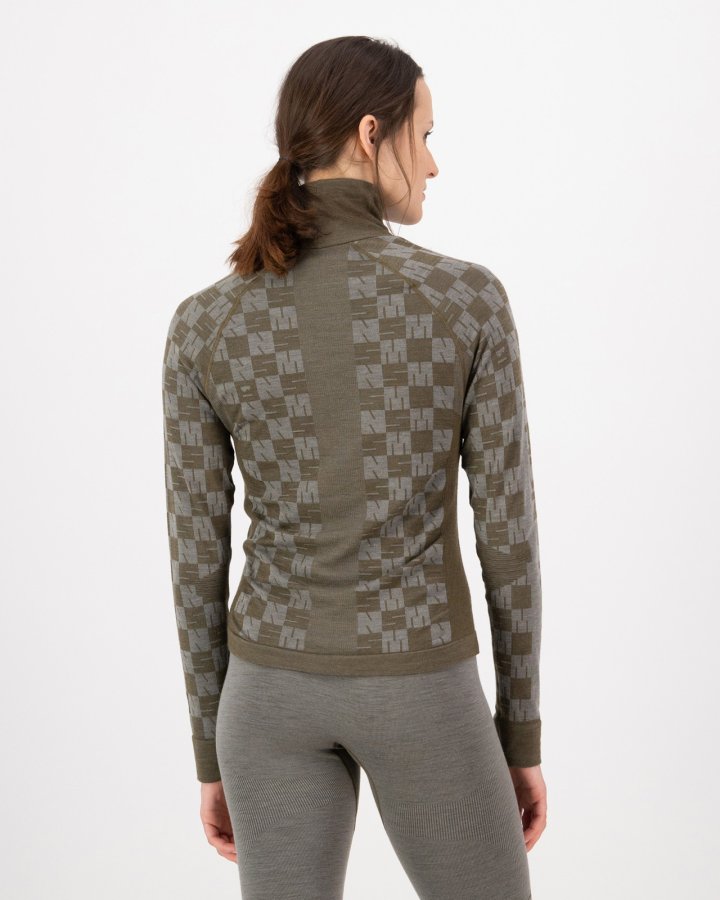 • triko MONS ROYALE ASCENDER MERINO MOCK NECK LS WMNS dried sage / dark olive