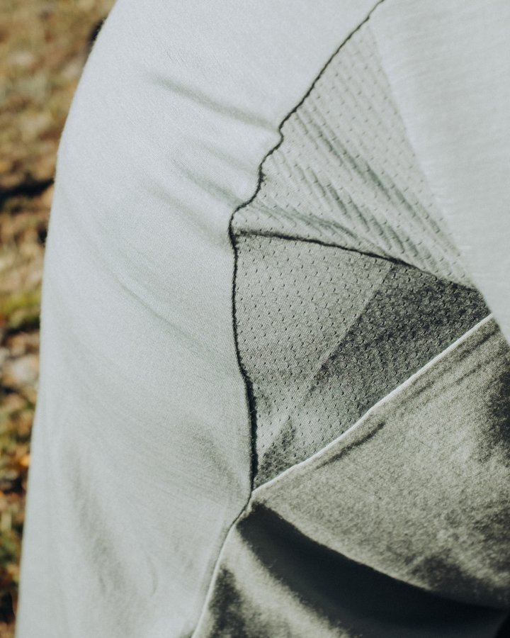 Panely v podpaží z merino síťoviny zefektivní ventilaci a uspíší schnutí.
